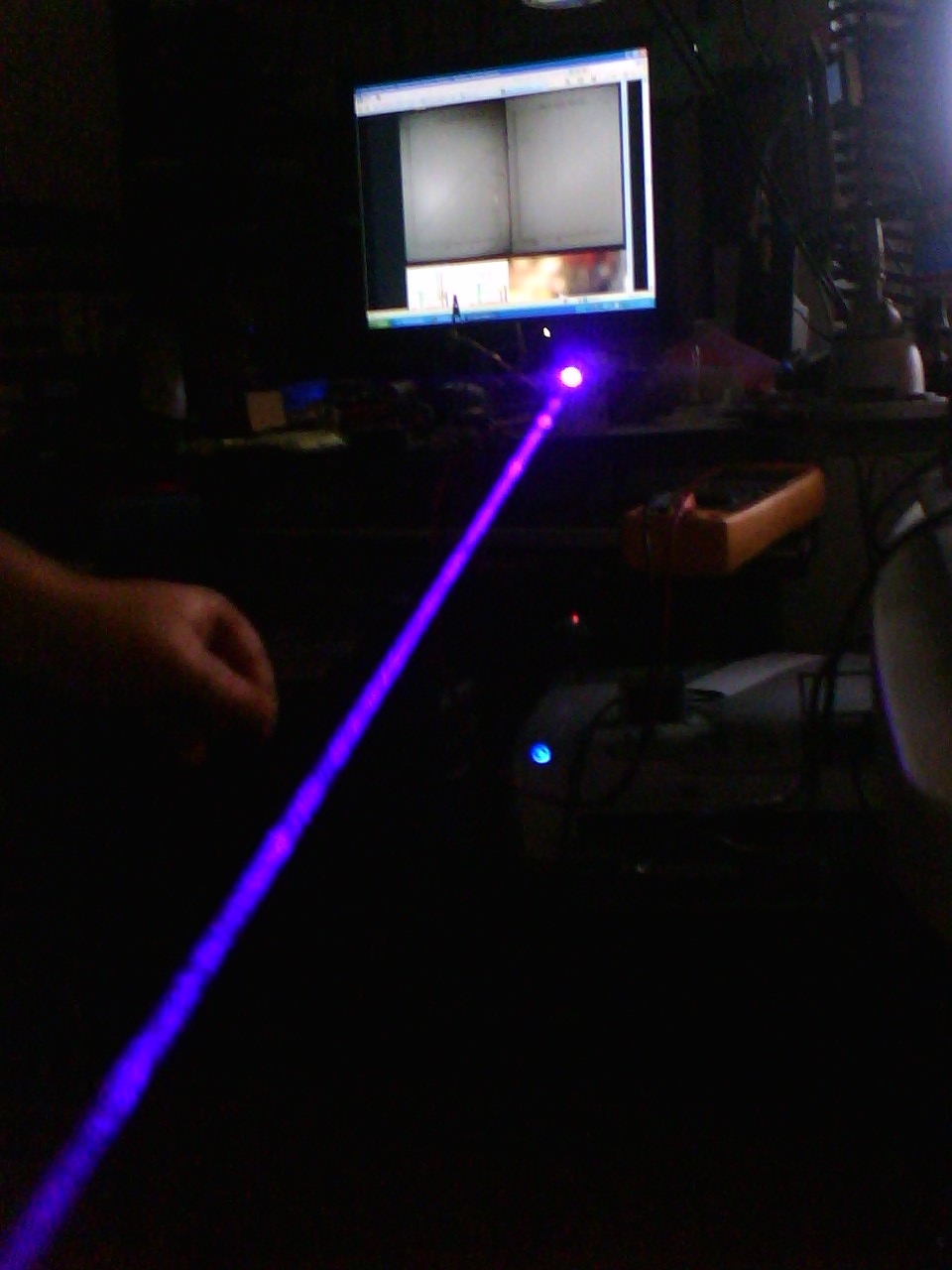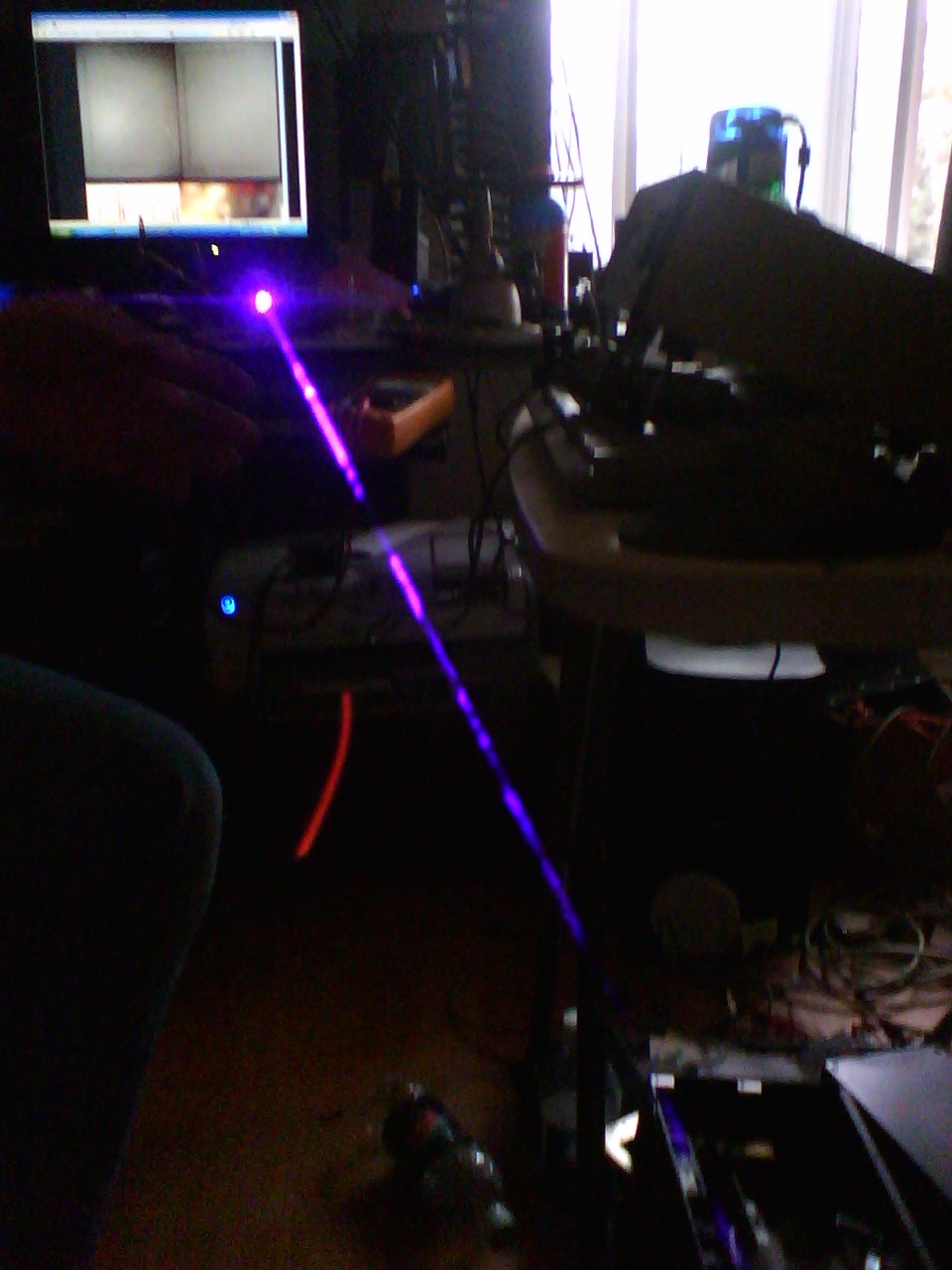 I spent this afternoon working with Lasernerd with my first HD-DVD diode DT0811. In the background you can see Dr. Lava's graph from LPF, wow this purple is nifty. We only brought it up to 87ma for now and 50-60mW. Thanks to Lasernerd for all of the help!